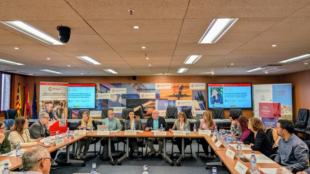 El passat 3 de desembre, la Cambra de Comerç de Mallorca i la Direcció General de Formació Professional i Orientació Educativa varen organitzar una jornada de treball sobre l’FP Dual Intensiva i el contracte de formació en alternança, en el marc del programa FP Pyme de Cámara de Comercio de España.